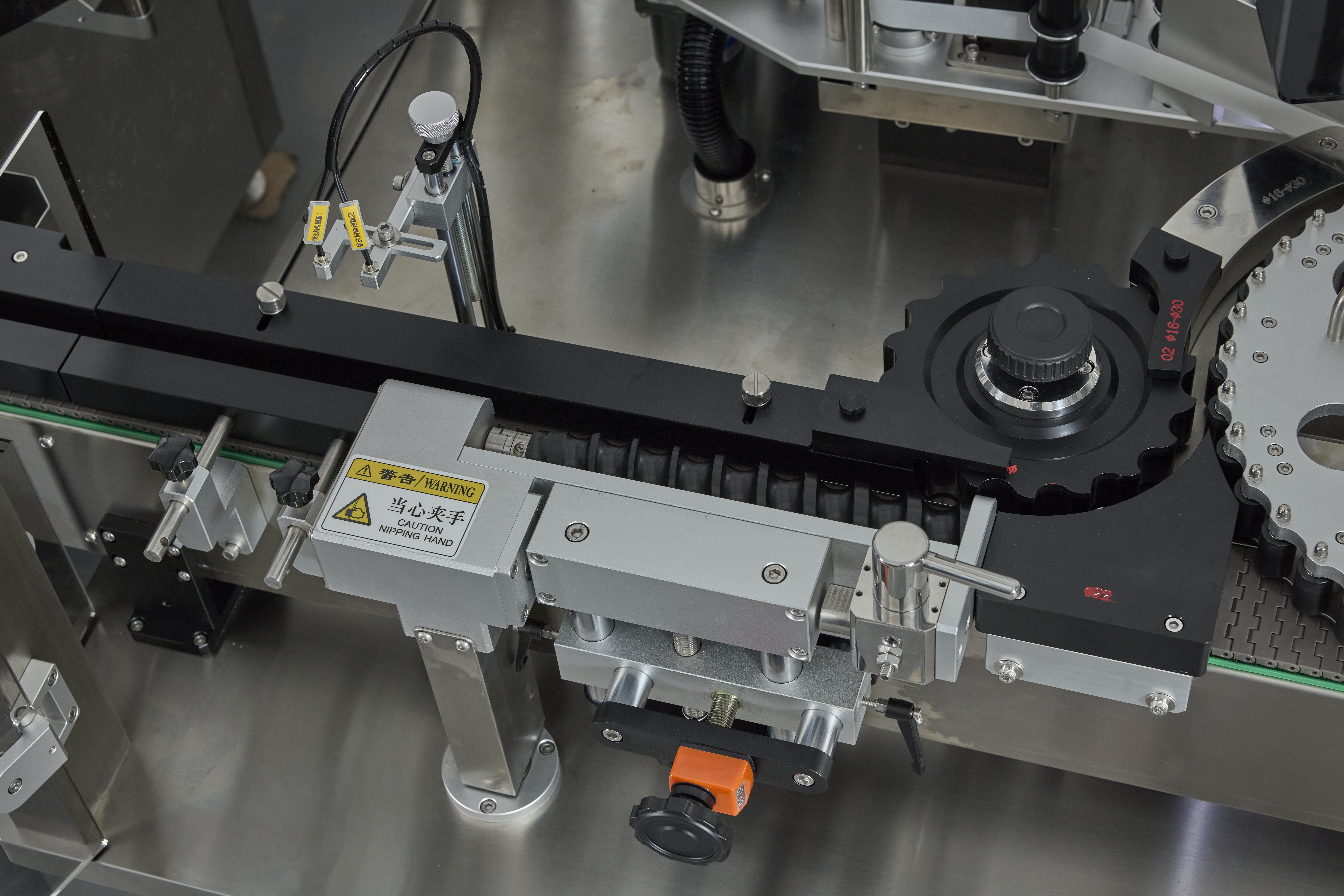 The spoke-wheel belt adopts the synchronous belt wrap sponge, which is running smooth with good buffering performance, It can make the label attachment firmer and reduce the risk to break the bottle.